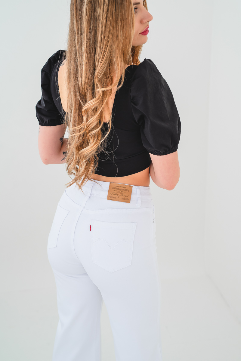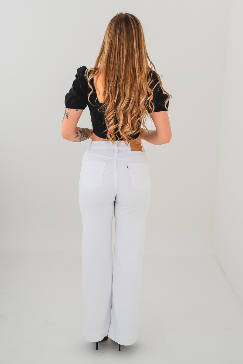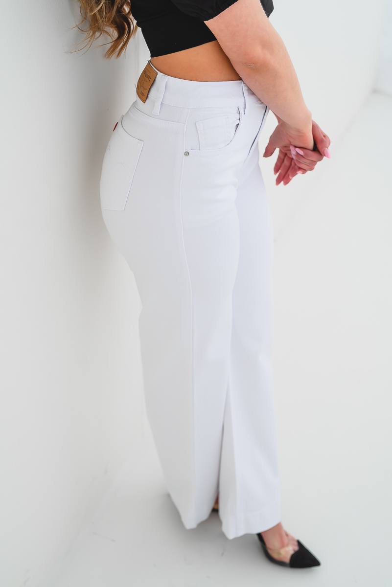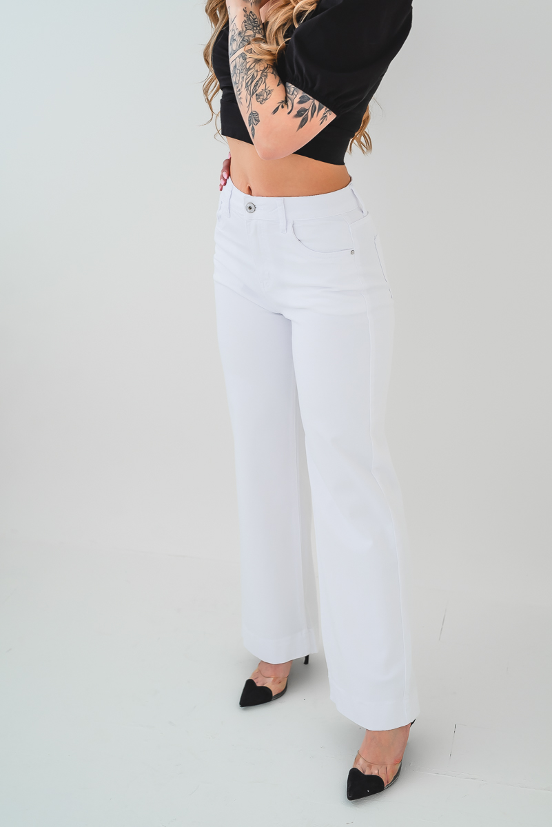 X261 Białe szerokie spodnie damskie Wide Leg - dopasowane elastyczne jeansy z wysokim stanem i szerokimi nogawkami XS-XL
