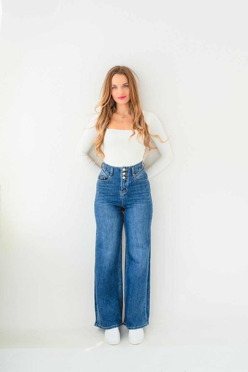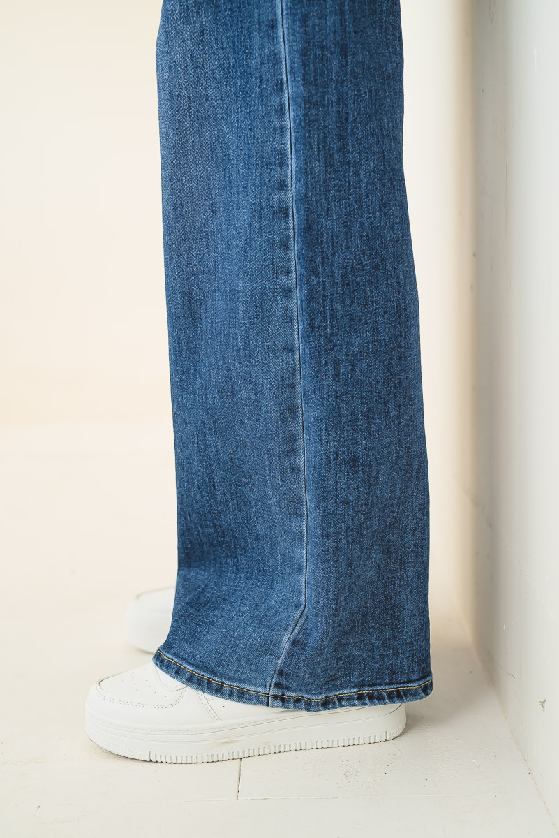 Modelujące elastyczne jeansy Wide Leg z wysokim stanem.